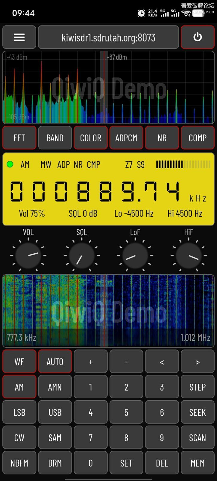 一款Android平台的SDR(软件定义无线电)短波收音机客户端,自带服务器列表,支持FFT和WF显示,方便选台。