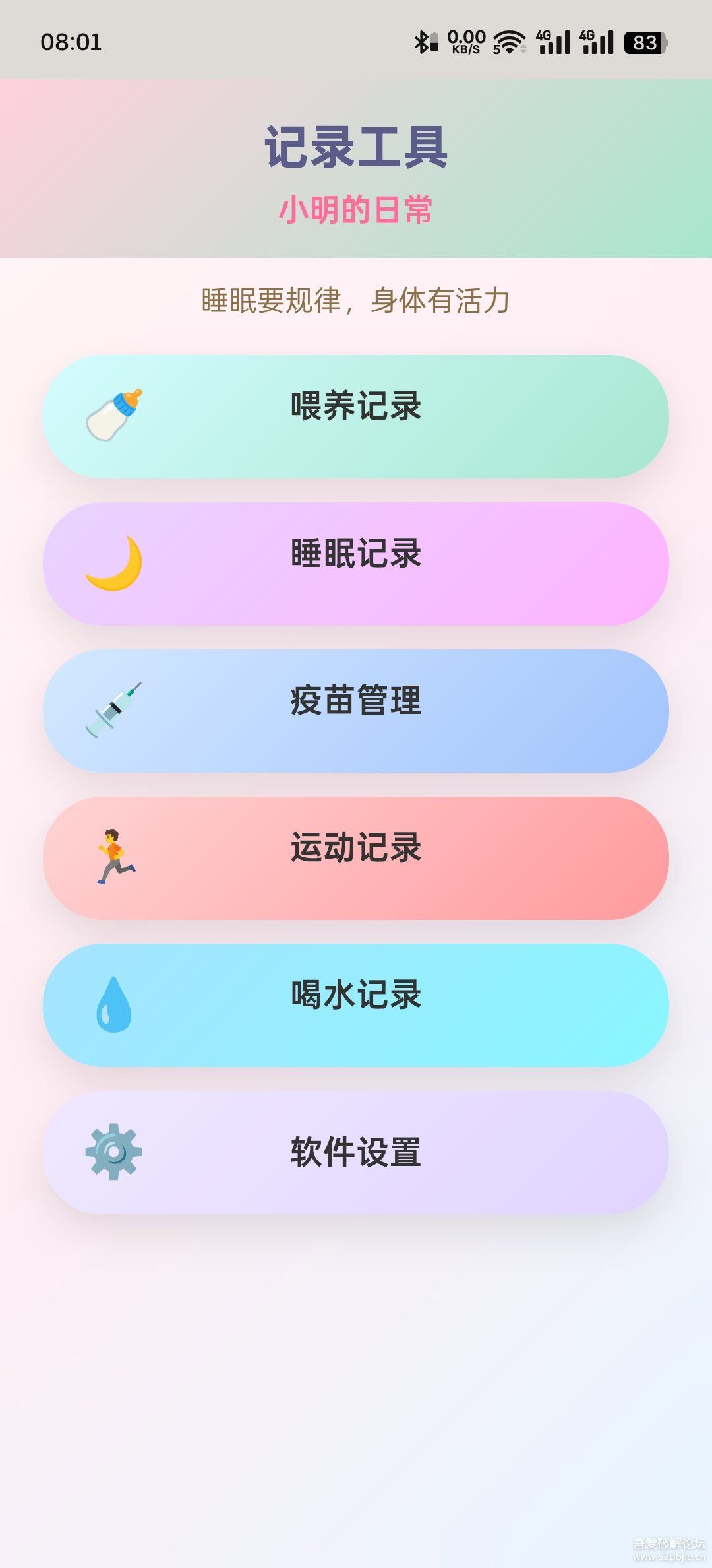 - 多功能记录:喂奶、运动、喝水、作息、收支、自定义记录